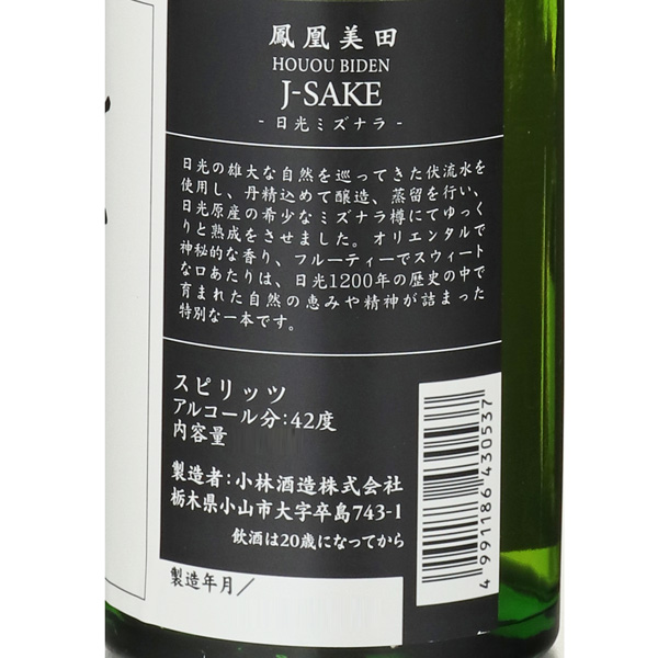 鳳凰美田 J-sake スピリッツ NIKKO ミズナラ 2016 42度