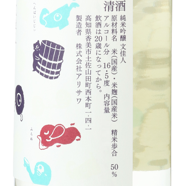 学問に秀で、教養にあふれた美人のお酒!明治10年創業。蔵の代表銘柄である文佳人とは、およそ400年前、土佐藩執政の野中兼山の娘で、お椀さんと呼ばれた女性に由来します。映画化もされた大原富枝さんの小説、「婉という女」は、このお婉さんについて書かれています。蔵の二代目は、このお婉さんを称え文佳人という銘柄としました。文佳人つまり文の佳人、手紙・文・詩歌・広くは学問に秀で、教養にあふれた美人である、と記念したのです。