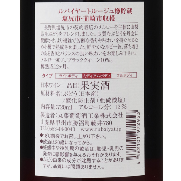 ルバイヤート・ルージュ樽貯蔵 2020 / 丸藤葡萄酒工業