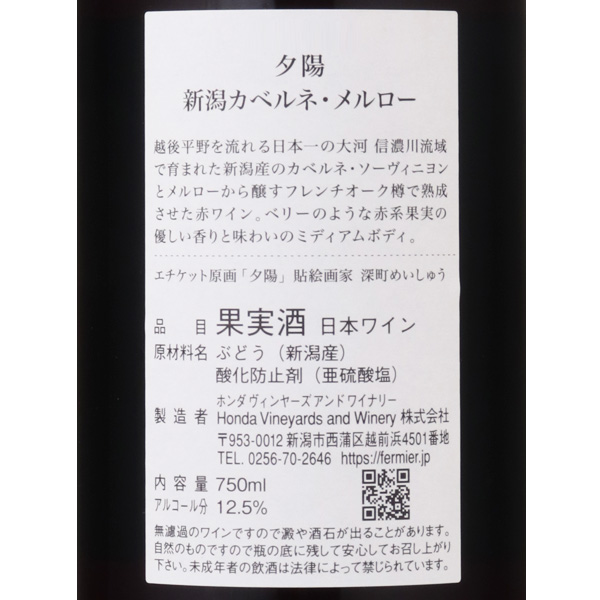 夕陽 新潟カベルネ・メルロー 2023 2024 / フェルミエ