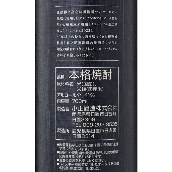 メローコヅル 嘉之助カスクフィニッシュ 2024 米焼酎41度 / 小正醸造 嘉之助蒸溜所