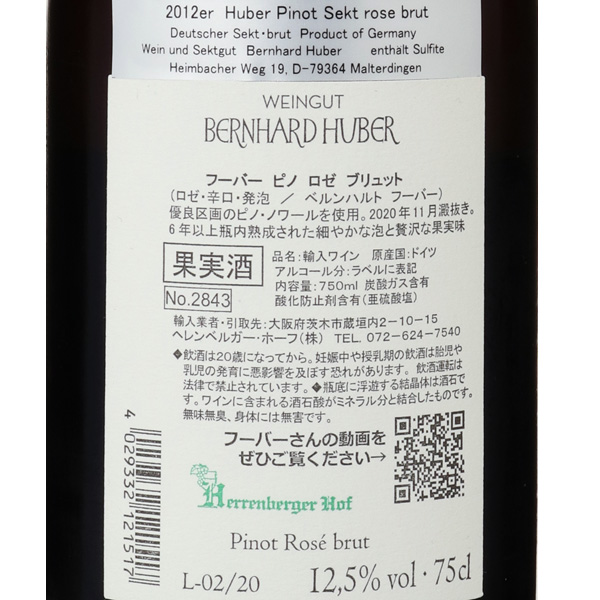ゼクト・ロゼ・ブリュット 2012 / ベルンハルト・フーバー