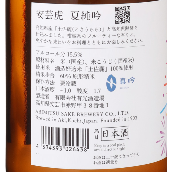 惜しみない手間と時間をかける酒造り有光酒造場は明治36年、1903年創業。背後から大きく山が迫り、すぐ目の前には太平洋が広がる、そんな海沿いの小さな集落、赤野の酒蔵です。高知県内でも鮎の美味しいことで有名で、柔らかな味わいが特徴の赤野川の井戸水を仕込み水に使用しています。蔵は昔からずっと変わらずシンプルで、人手をかけて仕込み醸された酒は、すべて酒槽(さかふね)を使い4~5日をかけてゆっくりと搾られます。土佐という辛口の地にありながら、この地で仕込んだ酒は柔らかく、丸く、そして人を和ませる優しさがあります。華やかさよりも、むしろ心の栄養となれるような酒を目指し、惜しみない時間と手間をかけ造り続けています。