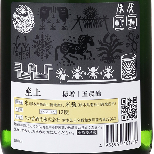 花の香酒造の哲学である「産土」は、土着の生産風土と祈りの精神で醸す酒造りをしています。近年、奇跡的に復刻され、自社農地と菊池川水系の農家で自然栽培した江戸時代の熊本在来種「穂増(ほませ)」で仕込んだ稀少な日本酒です。五農醸とは「菊池川流域穂増」「生もと造り」「木桶仕込み」「無施肥」「無農薬」この5つのレギュレーションによる製造。シルキーなガス感、木桶由来の落ち着きのある酸と甘味、滑らかな口当たりが広がります。注意事項