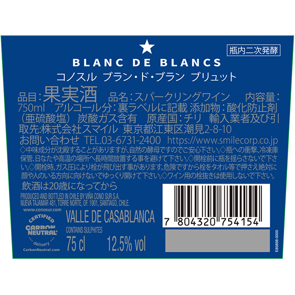 ブラン・ド・ブラン ブリュット 2016 2017 / コノスル