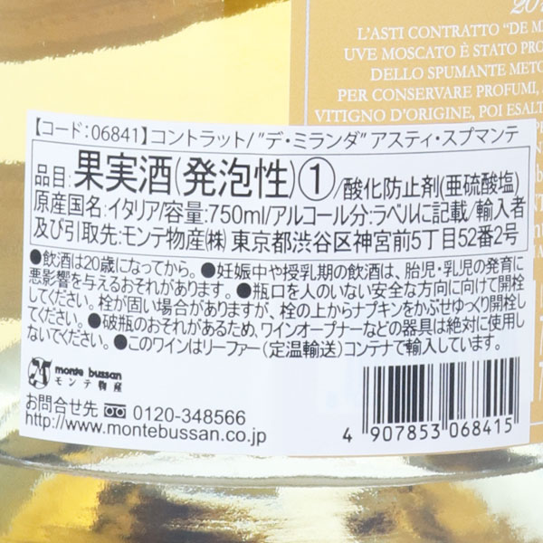 熟した洋ナシやハチミツの華やかで生き生きとした香りに、ミネラル感とハーブのニュアンスが感じられる、複雑味のある味わいです。モスカート種の果実味あふれるアロマと澱と熟成させたことによる複雑さによって、深みのあるスプマンテに仕上がりました。イタリア高級スプマンテの老舗・コントラットが手掛ける超ハイクオリティな1本です。食前酒としてはもちろん、デザートや味のしっかりしたチーズと美味しくいただけます。8月最終週に収穫。ごく低温に管理したステンレス製の圧力タンクで3ヶ月かけてゆっくりと発酵させ、その後はタンク内で澱とともに約2年間熟成させています。