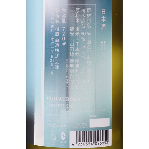 今まで培った技術に新たな感性を加え、より自由な感性でこれからの吟味を追求するUGOシリーズ。AURORA(:アウローラ、オーロラ)は「始まり」「曙」「夜明け」という意味があり、新酒一本目にふさわしいタイトルです。今年のAURORAは、麹米の精米歩合を60%へ変更。甘味・香りは控えめ、ややドライ感もあり食中酒に最適な一本に仕上げられています。蔵紹介