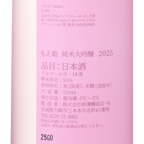 今年も「もえ姫 純米大吟醸」が完成いたしました!初夏にぴったりの果実を想像させるフルーティーでジューシーな味わいで、いくらでも飲めてしまう美味しさです♪ラベルは今回もtama5さんに新しく書き下ろしていただきました。見た目の可愛さからは想像がつかないほどの本格的な味わいに、ギャップを感じていただけると思います。ぜひいろんな方に楽しんでいただきたいです♪