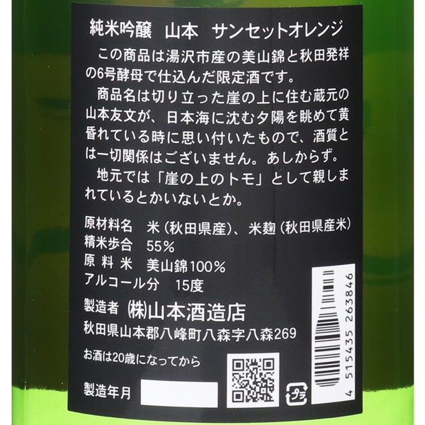 山本 純米吟醸 サンセットオレンジ