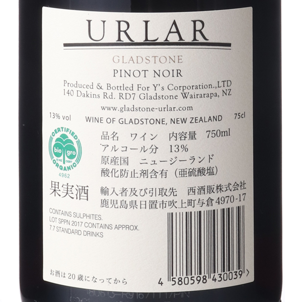 グラッドストーン ピノノワール 2022 2023 / アーラー