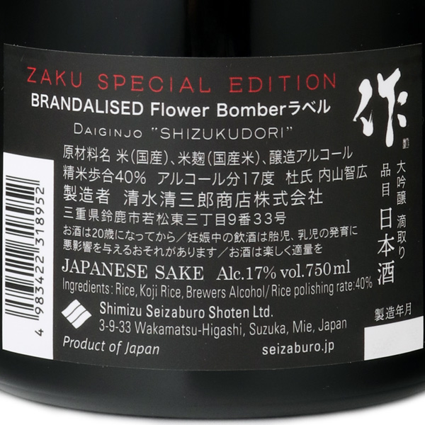 作 大吟醸 滴取り BRANDALISED Flower Bomber *クール便のみ