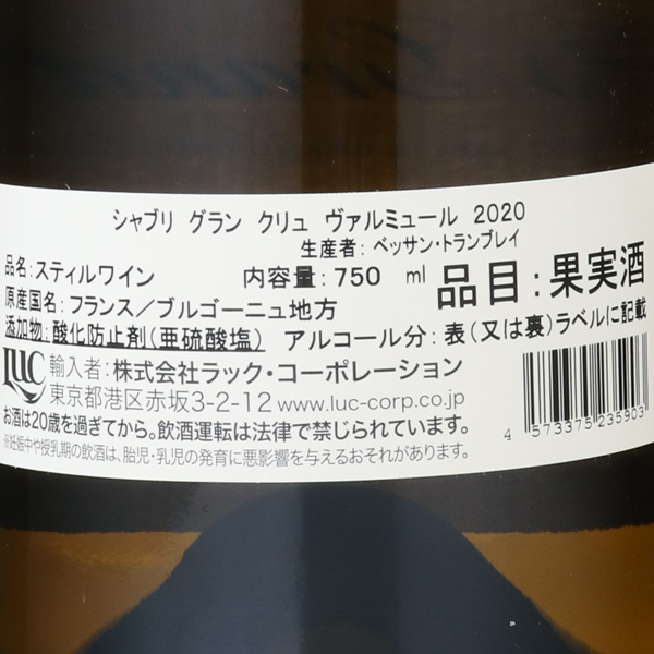 シャブリ・グランクリュ・ヴァルミュール 2020 / ベッサン・トランブレー