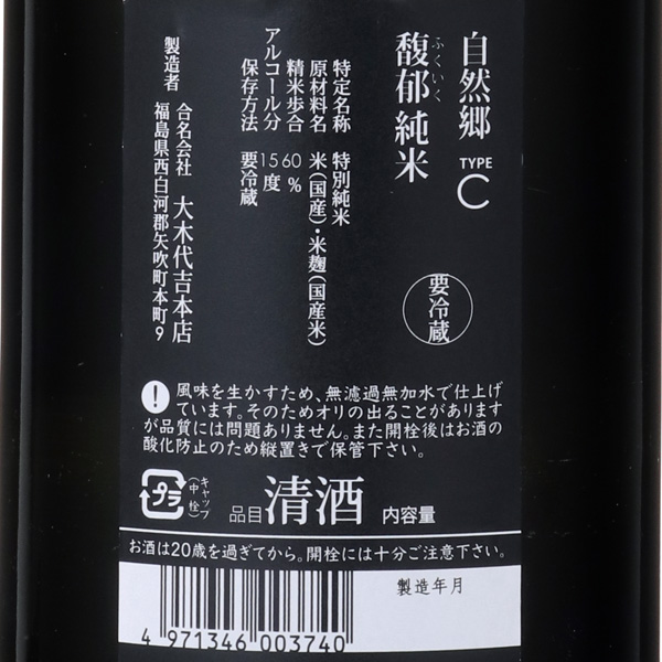 馥郁とはよいの香りのただようさまという意味で、苺、りんご、パイナップルのような爽やかでフルーティーな果実香が広がります。さらりとした口当たりでやわらかな甘味とほんのりとしたコクを感じます。パルミジャーノ・レッジャーノのようなドライフルーツのような甘やかな香りと濃縮された旨みを持つチーズにも好相性です。蔵紹介