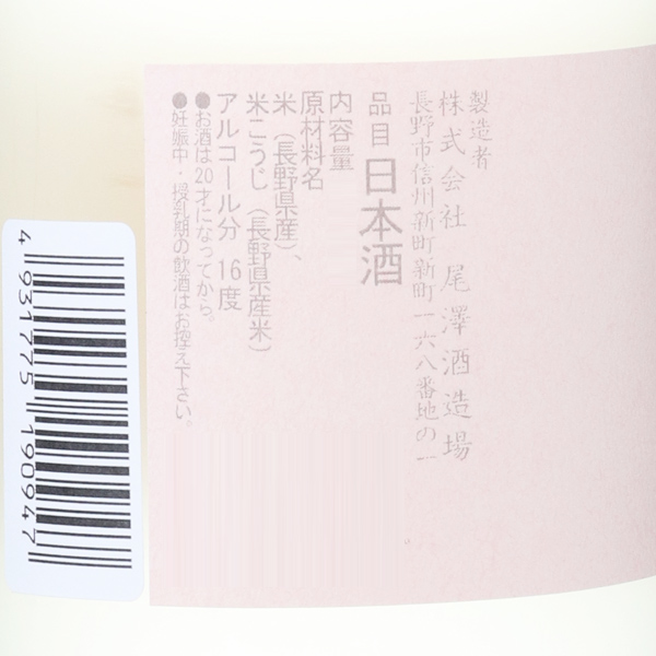 「和醸良酒」のもと日本酒を醸す。江戸文政年間、1820年頃創業。町のほぼ中央に北アルプスに源を発する犀川が流れ、まわりは山々に囲まれ、標高400メートルを越えるため、同じ県の北信地方同様、毎年寒さの厳しい冬が到来します。創業以来、ほぼ100%地元向けに日本酒を醸してきました。生産石数約60石と、全国にある酒蔵の中でもとても規模の小さい蔵のひとつです。大量生産の必要のない規模ですので3名の蔵人で仕込作業から営業までありとあらゆることを行っています。人間だと一人前といえば「二十歳」。日本酒造りで一人前にになるまでには、まだまだ一歩どころではなく、二歩も三歩も手前、沢山の方々に支えられ日本酒造りに励んでいるという事から、醸す清酒が「十九」と命名されました。
