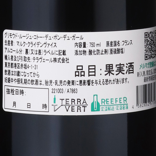 グリモウド・ルージュ・コトー・デュ・ポン・デュ・ガール 2020 / マルク・クライデンヴァイス