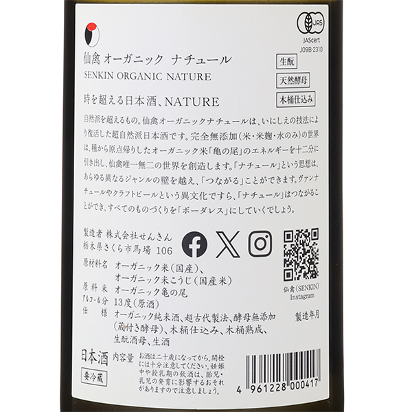 「江戸返り」のコンセプトの元、オーガニック・ナチュールも生まれ変わっています。上槽後に木桶での少々の熟成を経て、より複雑なフレーバーをお楽しみ頂けます。江戸返りの製法に乗っ取り、古代製法に向き合い、忠実に江戸の技法を再現。生まれ変わった新しいナチュールにご期待ください。仕様:超古代製法・酵母無添加・蔵付き酵母・木桶仕込み(新木桶)・生もと酒母・生酒