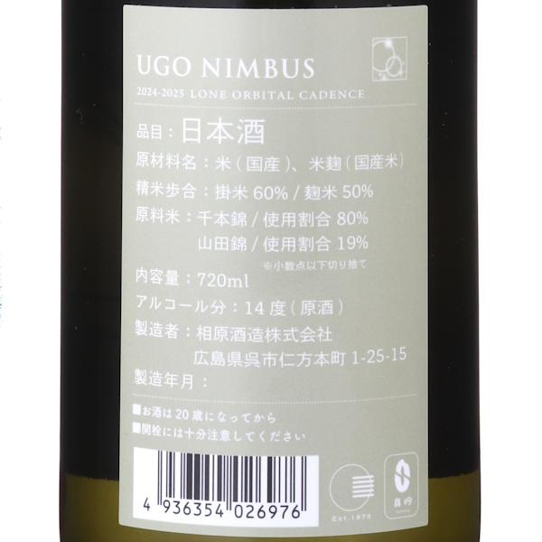 今まで培った技術に新たな感性を加え、より自由な感性でこれからの吟味を追求するUGOシリーズ。NIMBUS(ニンバス)とは神々の周囲を取り巻く光や光輪を意味します。天使の頭についてる輪や光輪です。転じて雲(雪雲・雨雲)という意味もあり、冬空の薄明光線・日暈みたいな透明感のあるイメージが重なり命名しました。スイカズラのような甘い花に若葉や桃のニュアンス。開栓時はリンゴを思わせる透明な酸と果皮のようなほろ苦さがシャープな印象。時間とともにまろやかな甘みにまとまり、柔らかな飲み心地へ変化します。蔵紹介