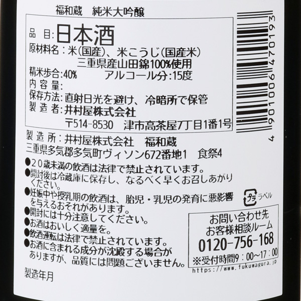 徹底した品質管理の四季醸造北海道あずきバー や たい焼きアイス などで有名な菓子メーカーの井村屋が、1900年創業の株式会社福井酒造場(三重県伊賀市)の清酒製造業を引き継ぎ、酒事業に参入。井村屋が手掛けた初の日本酒の銘柄は、創業以来福寿円満なお酒を作り続けてきた福井酒造場の「福」と、井村屋の創業者井村和蔵の「和蔵」から、「福和蔵(ふくわぐら)」と名付けられました。