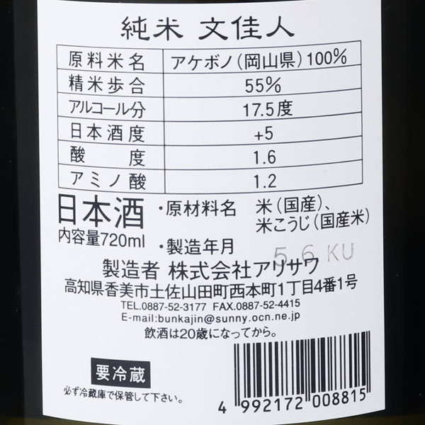 学問に秀で、教養にあふれた美人のお酒!明治10年創業。蔵の代表銘柄である文佳人とは、およそ400年前、土佐藩執政の野中兼山の娘で、お椀さんと呼ばれた女性に由来します。映画化もされた大原富枝さんの小説、「婉という女」は、このお婉さんについて書かれています。蔵の二代目は、このお婉さんを称え文佳人という銘柄としました。文佳人つまり文の佳人、手紙・文・詩歌・広くは学問に秀で、教養にあふれた美人である、と記念したのです。
