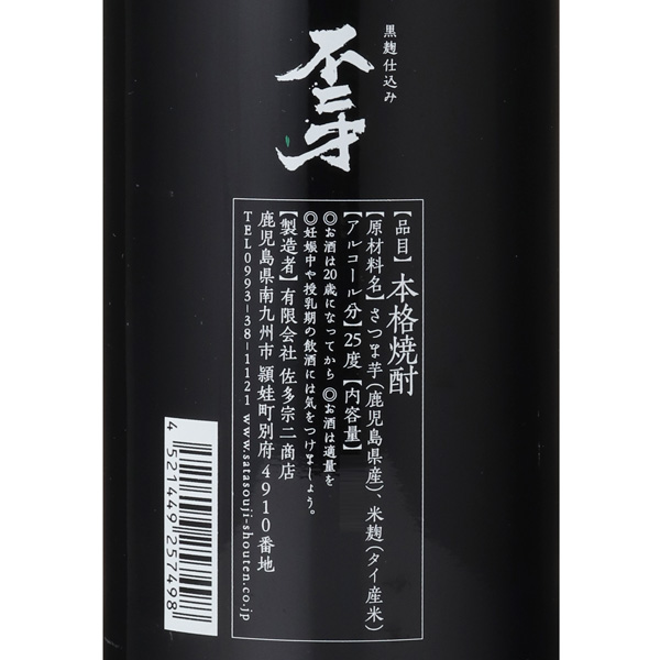 不二才 黒麹仕込み 芋焼酎 25度 / 佐多宗二商店