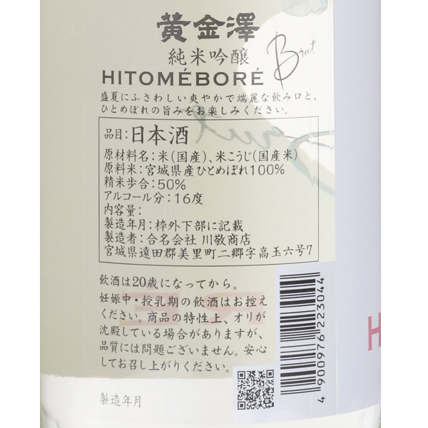 黄金澤 純米吟醸 HITOMEBORE Brut