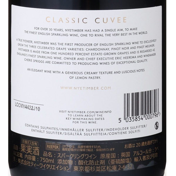 注目度大の英国最高峰スパークリング!こちらはナイティンバーが誇るフラッグシップキュヴェ。美しく優しいゴールデンカラーと良質な泡立ちが目を引きます。長期熟成期間(通常3年以上)を経ることでトーストやスパイスを感じさせる複雑なアロマが際立ち、味わいにはその複雑なアロマに蜂蜜、アーモンド、パイ生地や焼きリンゴのフレーバーが加わります。凝縮感と繊細さ、そして長い余韻の調和がとれた上質でエレガントなワインです。