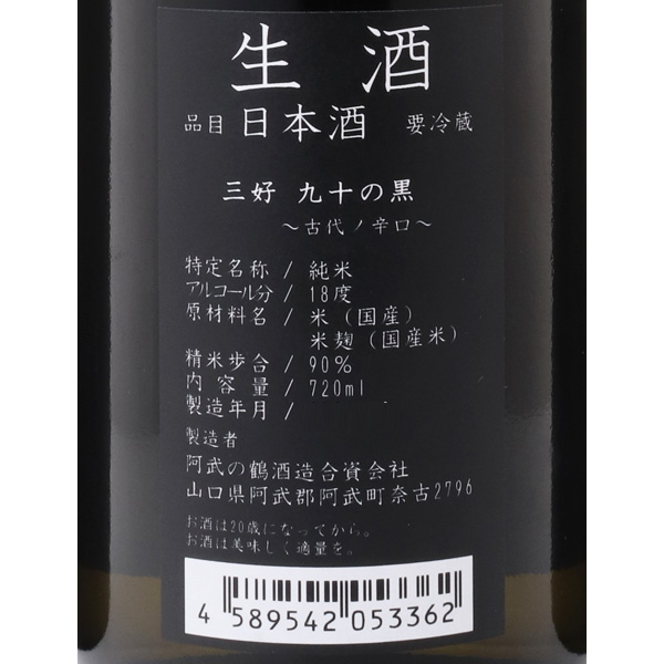 三好 純米 九十の黒 古代ノ辛口 無濾過生原酒