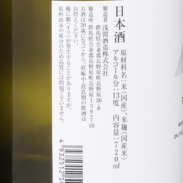 R4BYから新たな取り組みとして試験醸造を行っている浅間酒造。13度原酒と低アルコール設計での醸造は過去に何度か挑戦してきましたが、今まで試した事が無かった製法で試験醸造を行った所、納得のいく仕上がりになり、今回リリースする事になりました。先入観なしでお酒そのものを楽しんで頂きたいとの蔵元の意図で、スペックは非公開となっています。今までの浅間山とは方向性を変え、優しい甘みと滑らかな酸、仄かなガス感が爽やかに余韻につながります。蔵紹介