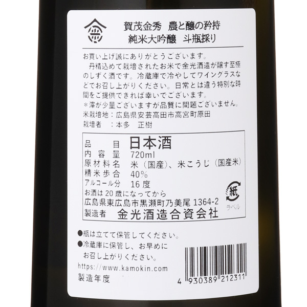 賀茂金秀 「農と醸の矜持」 純米大吟醸斗瓶 *クール便のみ