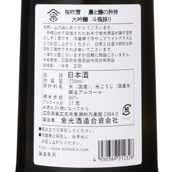 桜吹雪「農と醸の矜持」 大吟醸斗瓶 *クール便のみ