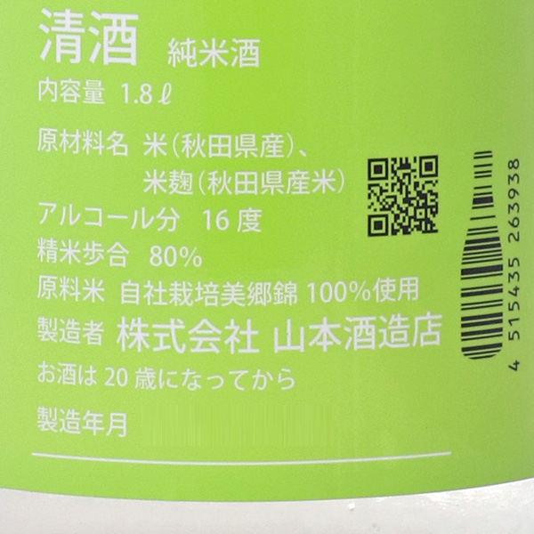 自社栽培の「美郷錦」を使用し80%まで精米、そして「きょうかい1号酵母」で醸しました。この商品は蔵元の山本が自らトラクターで耕起し、買い替えた新車のコンバインを泥だらけに汚し刈り取った美郷錦と、100年前の酵母で仕込みました。7 月の記録的な豪雨や9 月の記録的な猛暑により栽培は困難を極めた事により、米を磨くのは勿体無いと精米は80% にあえて抑えています。クラシック酵母を現代の低温発酵させた事により山本らしいシャープでキレのある酒質に仕上がりました。今回のみの限定酒となりますので、皆さまどうぞお楽しみください。(山本社長談)