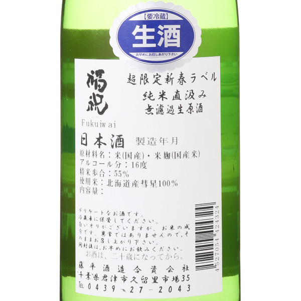 福祝 ワンコ新春ラベル 直汲み純米 生酒
