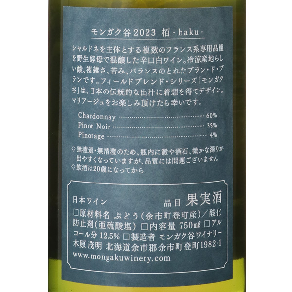 栢 はく 2023 / モンガク谷ワイナリー *クール便のみ