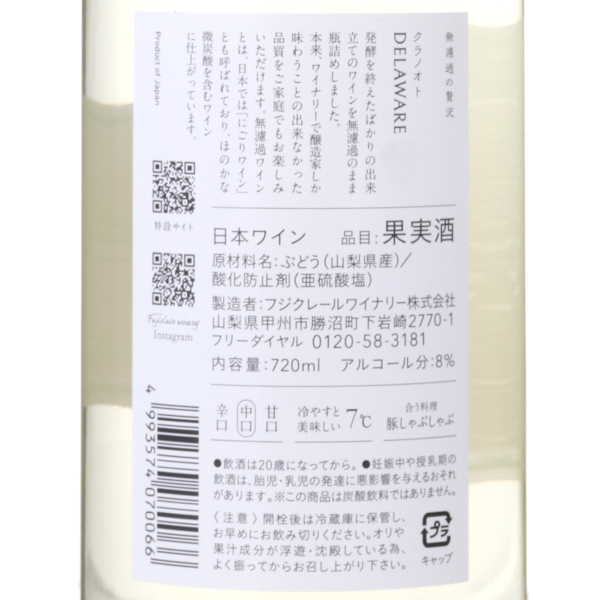 フジクレール クラノオト デラウェア 2024 / フジクレールワイナリー