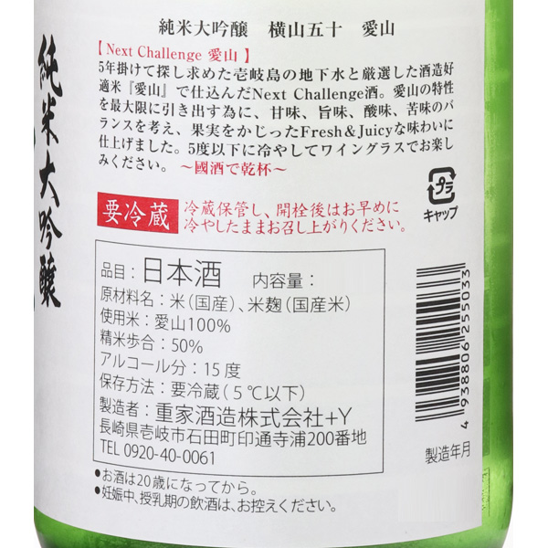 横山五十 純米大吟醸 愛山 無濾過生原酒