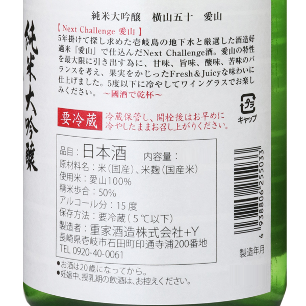 横山五十 純米大吟醸 愛山 生詰