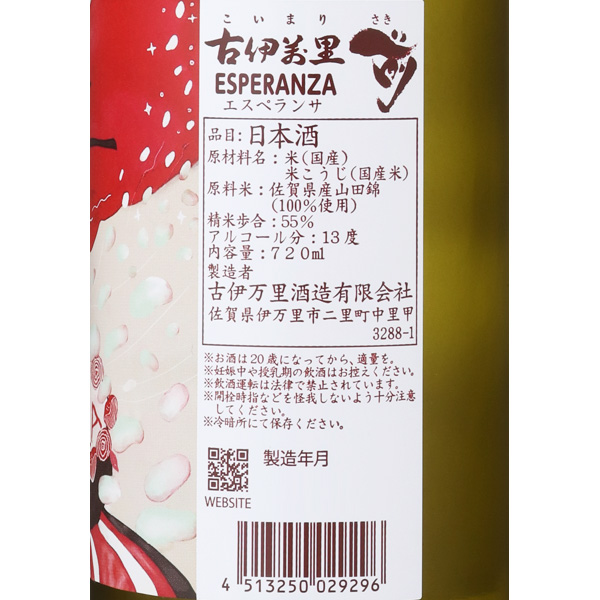 伝統を守りつつ、現代の人々に愛されるお酒を醸し続ける明治42年、1909年創業。佐賀県西部、伊万里市は焼き物「古伊万里」で世界的に有名な土地。歴史ある焼き物に負けず、世界中の皆に愛されるようにと酒銘に「古伊万里」と名付けました。代々受け継がれた技法や伝統を守りつつ、時代とともに変わるお客様の価値観や生活様式を理解して、時代にマッチした日本酒のあり方を追求しています。近年は国内外のコンテストにて数多の受賞を果たし、大手航空会社のファーストクラスに搭載されるなど評価の高い蔵元です。