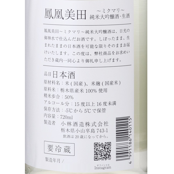鳳凰美田 純米大吟醸 生酒 ミクマリ FLY HIGH