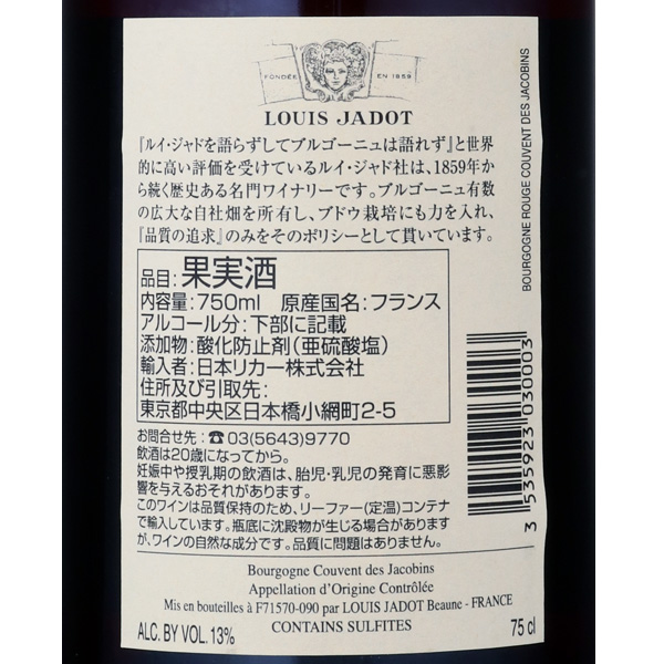 ブルゴーニュ・ルージュ・クーヴァン・デ・ジャコバン 2022 / ルイ・ジャド