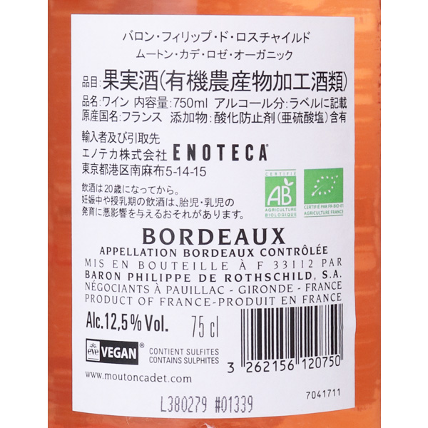 ムートン・カデ・ロゼ・オーガニック / バロン・フィリップ・ド・ロスチャイルド