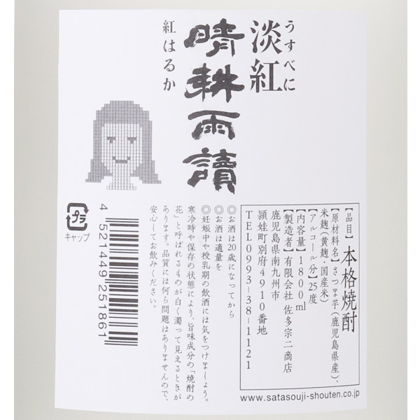 晴耕雨讀 淡紅 うすべに 紅はるか 芋焼酎 25度 / 佐多宗二商店