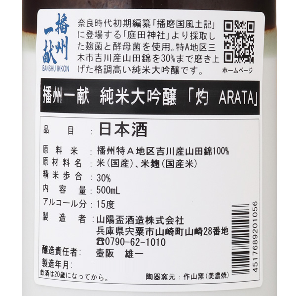 播州一献 純米大吟醸 灼 ARATA *クール便のみ