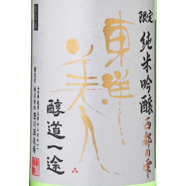 「醇道一途(じゅんどういちず)」、この言葉は、「何があろうと今もこれからも酒造り一筋に生きていきなさい」と社長兼杜氏の澄川宜史氏が、初めて教えを請うた灘の銘杜氏の米田杜氏に頂いた言葉です。「原点」から「一歩」を踏み出して、これからは「醇道一途」の気持ちで酒造りに精進していきます。山口県のオリジナル酒米である西都の雫を使用。柔らかな口当たりと、すっきりとした甘味に生酒特有のフレッシュさが加わり、より「西都の雫」を堪能していただけるお酒に仕上がっています。心地良い秋の夕べのひと時を楽しんで頂けるお酒として、食事を一層華やかに彩る一本としてお楽しみください。