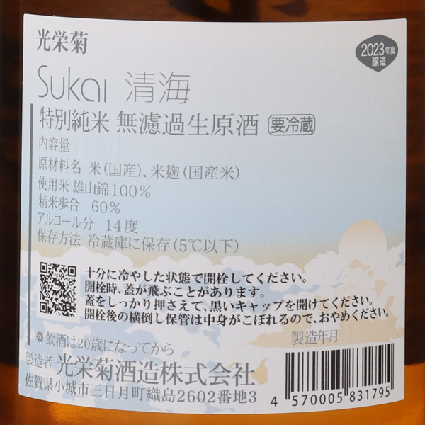 光栄菊 特別純米 Sukai 清海 無濾過生原酒