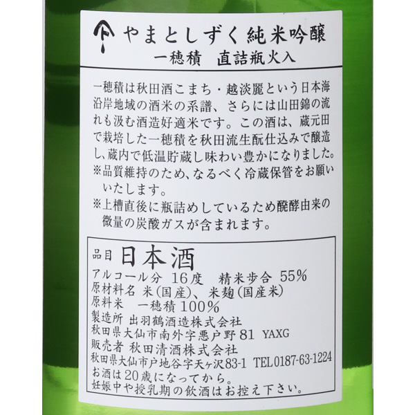 蔵元田にて栽培した一穂積(いちほづみ)は秋田酒こまちと越淡麗という秋田と新潟の代表的な酒造好適米を両親にもつ新品種です。秋田流生もと仕込みで低温で丁寧に醸し、しぼりたてを速やかに瓶詰め、瓶貯蔵にてじっくり寝かせました。春夏を過ごし、心地よく飲み頃に調和した香味をお楽しみください。蔵紹介