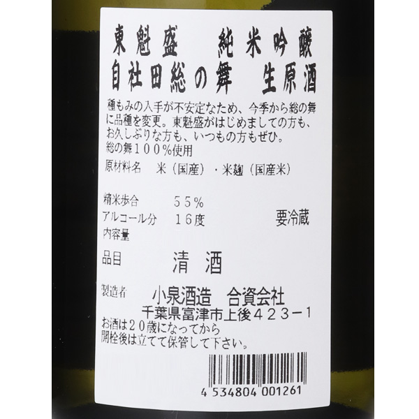 東魁盛 純米吟醸 自社田 総の舞 生原酒