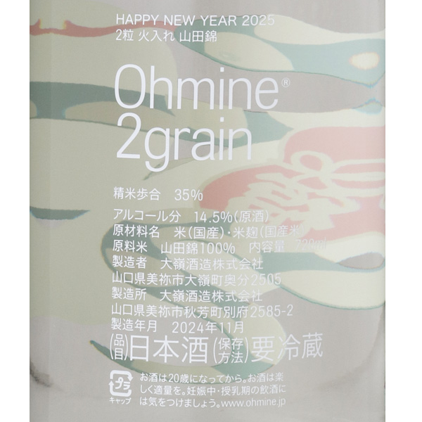 2025年の干支である「巳」のデザインを施した日本酒「HAPPY NEW YEAR 2025」は「2粒 火入れ 山田錦」をベースに特別醸造。九谷焼の酒器は、伝統的な技法を使用し今回限りのオリジナルとなります。今回の限定醸造では、さらなる高みの礎となるオリジナルの山田錦を使用。非常に複雑な層から成る石灰岩と赤い泥灰土が混在する独特な土壌形成が特徴で、気品と強靭なミネラルを持つ個性的な山田錦は穀物の豊潤さと透き通る甘さを兼ね備えています。3億年前は海の底だった石灰岩地帯から湧き出る仕込み水は軟水ながら力強いミネラルが特徴で、醸造工程で多層的に影響を及ぼし複雑さと個性をもたらします。醸造家たちの日々の研究と技術の結晶が自然の恵みと調和し大嶺酒造が表現する王道の日本酒の一歩となりました。