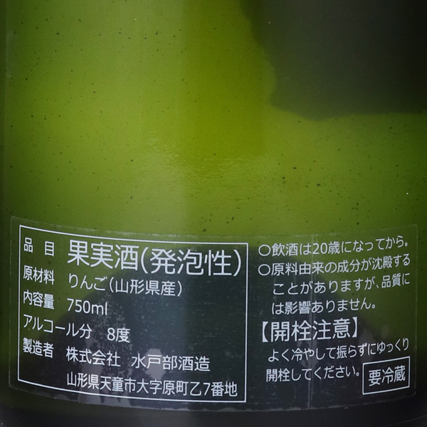 山形正宗の醸造元、水戸部酒造のシードル。蔵のある天童市干布地区は、果物王国山形県の中でも果実の名産地。蔵の南側には水戸部酒造の果樹園が広がっており、りんごやさくらんぼ、栗などの果実が栽培されています。この豊かな恵みを使って、シードルの製造を開始しました。今回リリースするシードルは、果皮が真っ赤に染まった小玉の「紅玉」、酸味が強いのが特徴です。香りもよく、甘酸っぱくて濃厚な味わいが楽しめます。喉ごし爽快、後口すっきり、フレッシュでジューシーな味わいをお楽しみください。