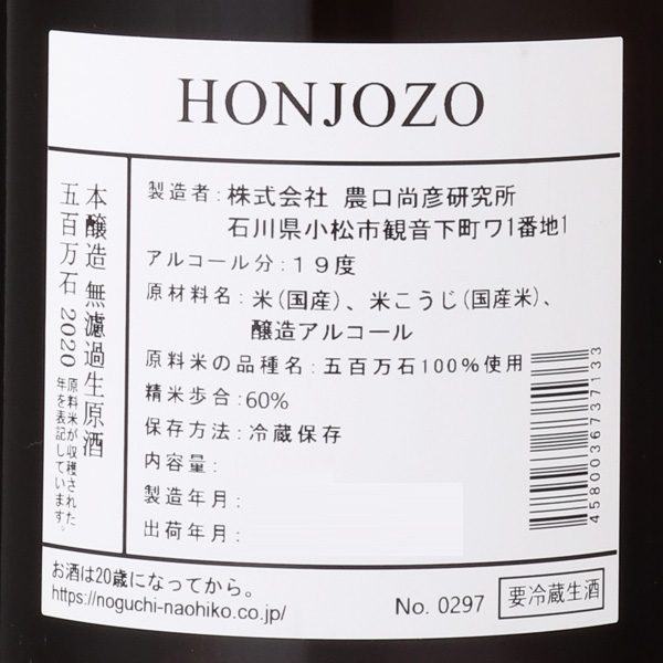 農口尚彦研究所 本醸造 無濾過生原酒 2022 2023