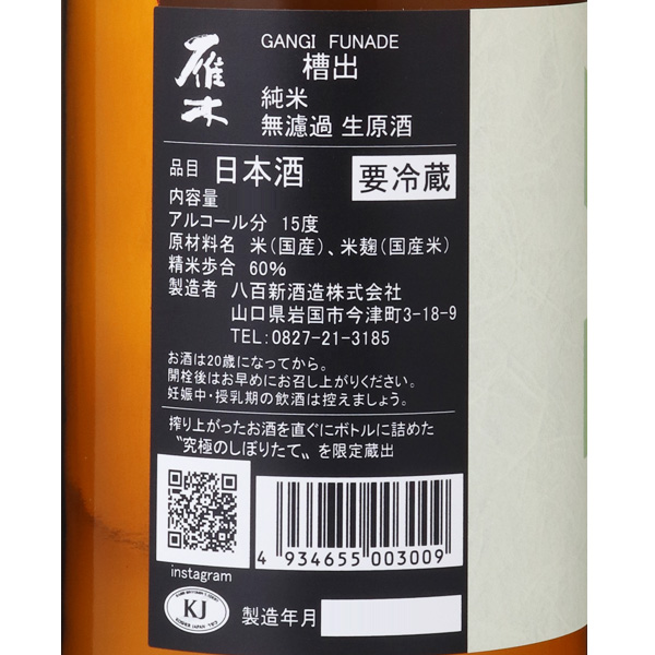 雁木 純米 FUNADE 槽出 無濾過生酒